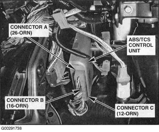 | ABS/TCS Control Unit | Below left side of dash. See Figure. |