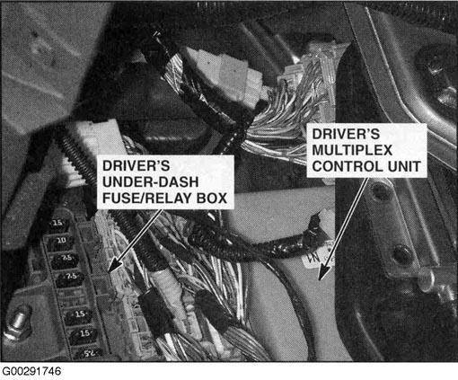 | Passenger Multiplex Control Unit | In passenger underdash fuse/relay box. See Figure. |