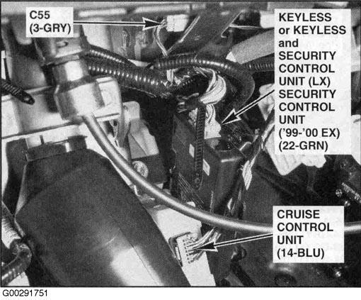 | Keyless & Security Control Unit | Behind dash, right of steering column. See Figure. |