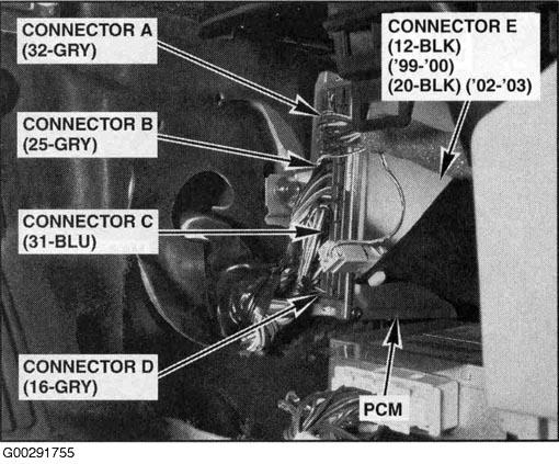 | PCM | Behind lower center of dash. See Figure. |