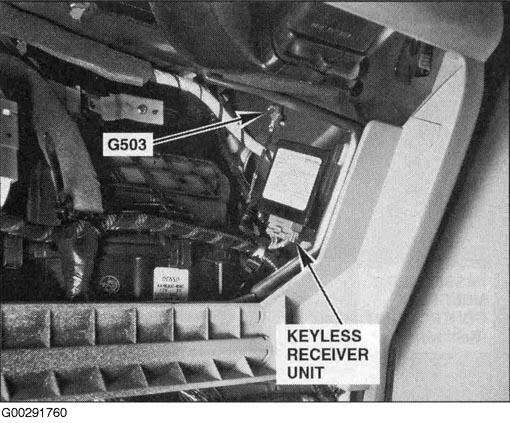 | Keyless Receiver Unit | Behind right end of dash. See Figure. |