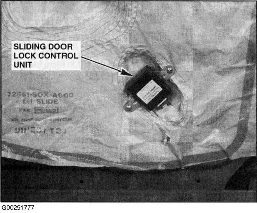 | Sliding Door Lock Control Unit | In left sliding door. See Figure. |
