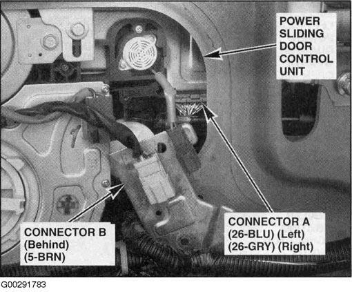 | Power Sliding Door Control Unit (Left) | Behind left rear side trim panel. See Figure. |