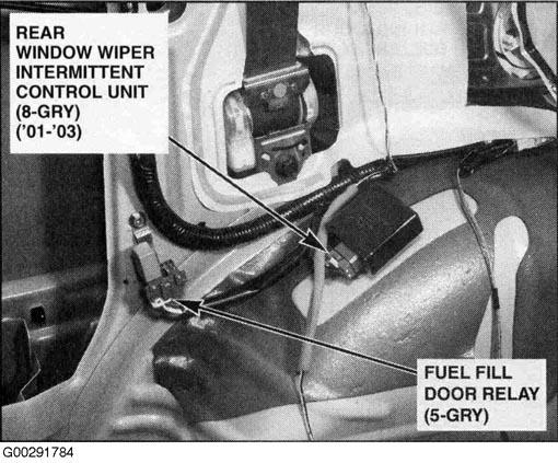 | Rear Window Wiper Intermittent Control Unit | On left rear fenderwell, in cargo area. See Figure. |