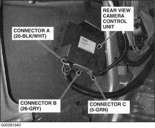 | Rear View Camera Control Unit | Left rear of vehicle. See Figure. |