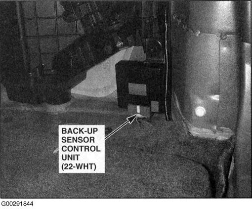 | Back-Up Sensor Control Unit | Right rear of vehicle. See Figure. |