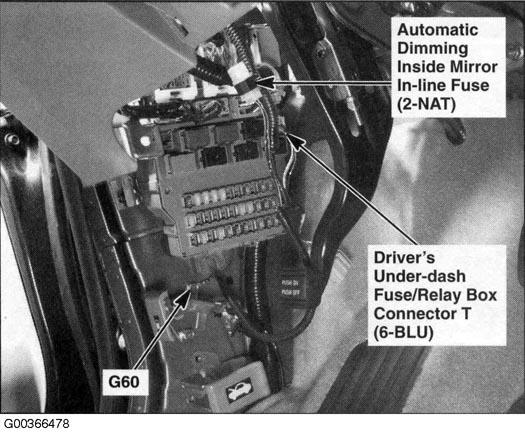 | Automatic Dimming Inside Mirror In-Line Fuse. | Left kick panel. See Figure. |