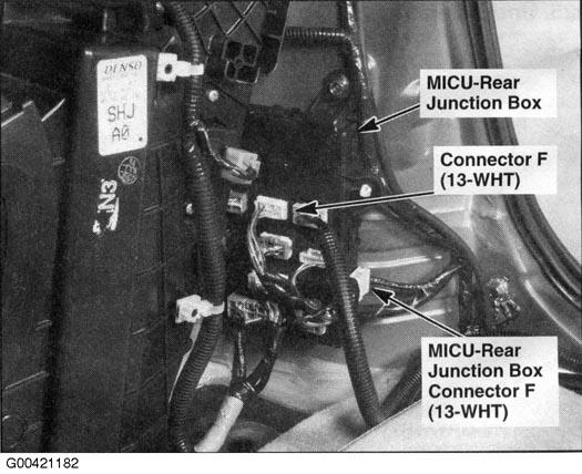 | MICU-Rear Junction Box | Behind right rear side trim panel. See Figure. |