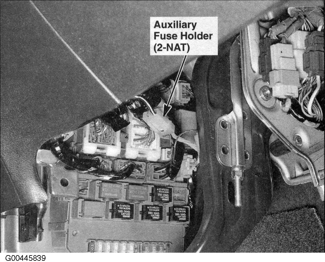 | Auxiliary Fuse Holder | Under left side of dash. See Figure. |