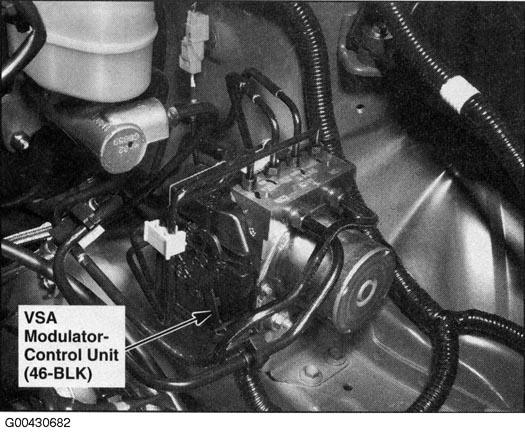 | VSA Modulator Control Unit | Left side of engine compartment. See Figure. |
