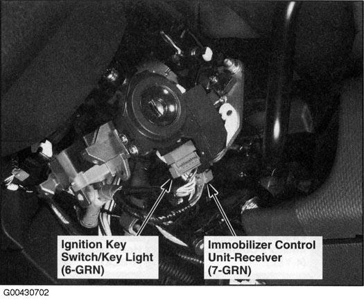 | Immobilizer Control Unit Receiver | In steering column, on ignition key cylinder. See Figure. |