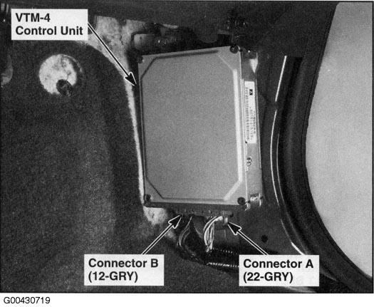 | VTM-4 Control Unit | Behind right kick panel. See Figure. |