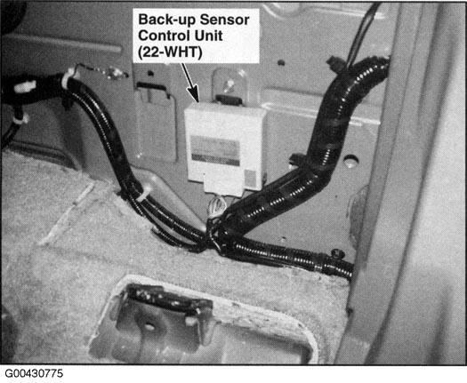 | Back-Up Sensor Control Unit | Behind left side of rear seat. See Figure. |