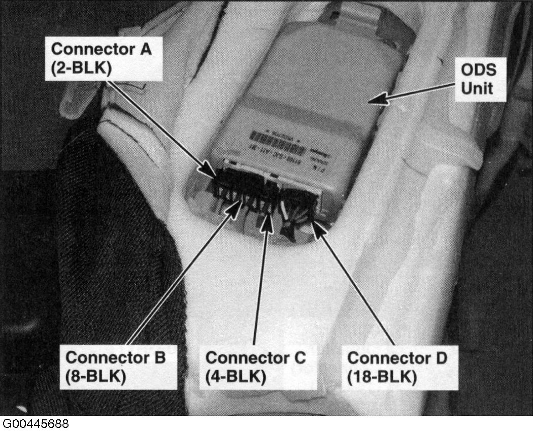 | ODS Unit | Left side of front passenger's seat back. See Figure. |