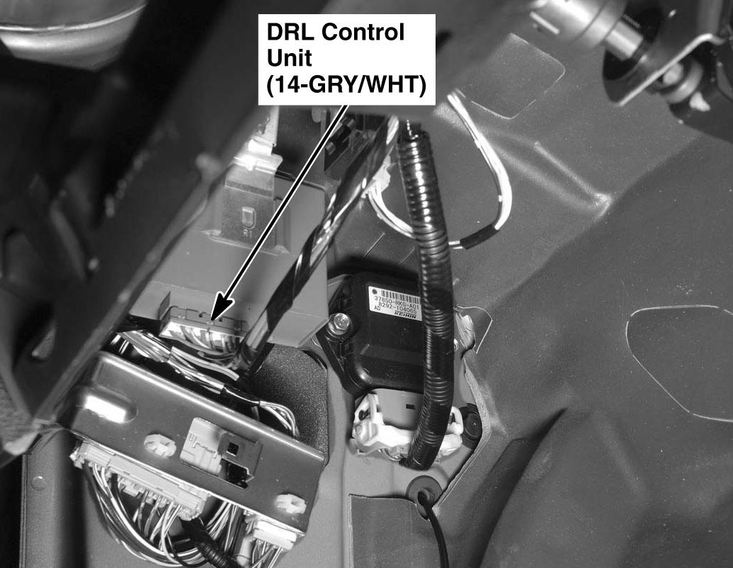 | DRL Control Unit | Under left side of dash. See Figure. |