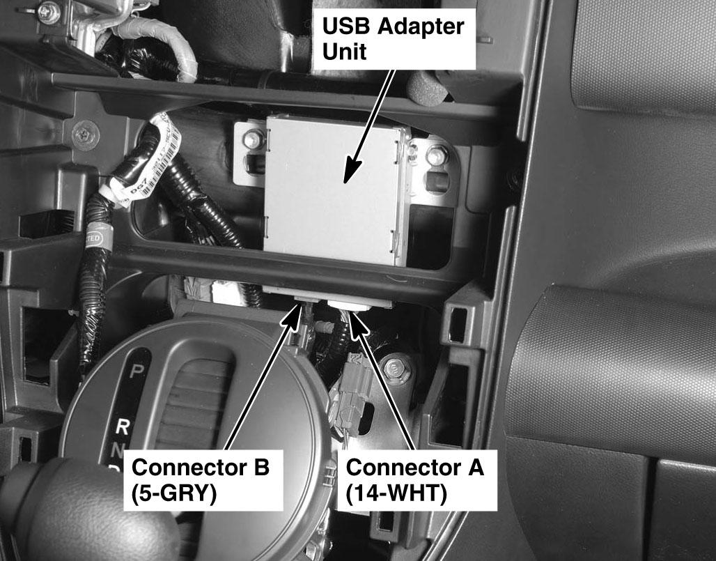 | USB Adapter Unit | Behind middle of dash. See Figure. |