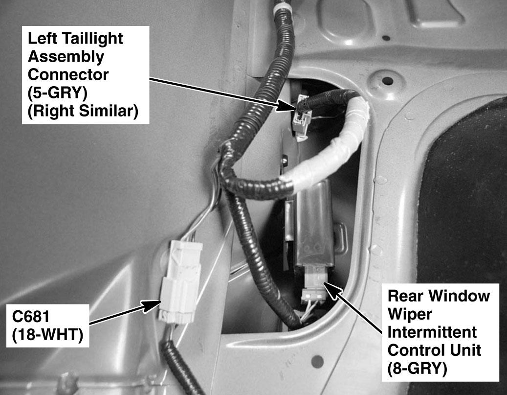 | Rear Window Wiper Intermittent Control Unit | Behind left quarterpanel. See Figure. |