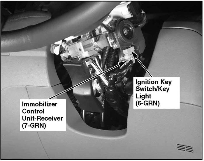| Immobilizer Control Unit-Receiver | On steering column, near steering lock. See Figure. |