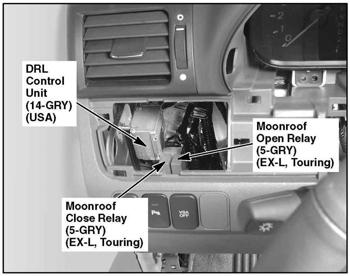 | DRL Control Unit | Under left side of dash. See Figure. |