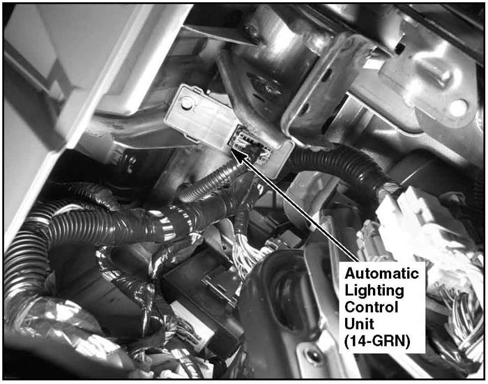 | Automatic Lighting Control Unit | Under left side of dash. See Figure. |