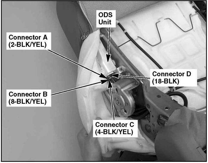| ODS Unit | In left side of front passenger's seat back. See Figure. |