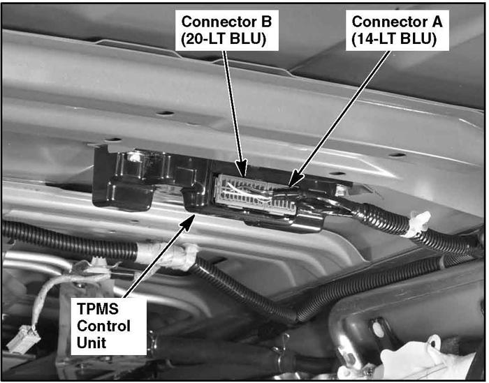 | TPMS Control Unit | Middle of roof. See Figure. |