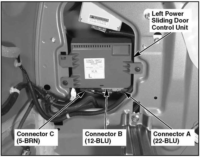 | Power Sliding Door Control Unit (Left) | Behind left rear side trim panel. See Figure. |