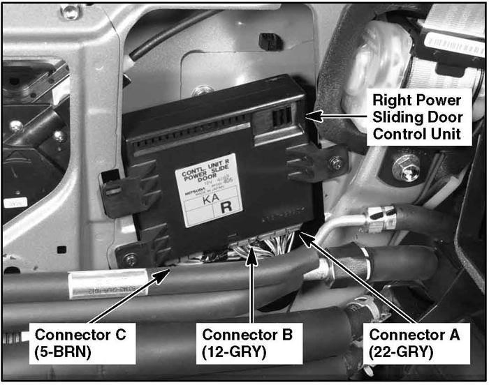 | Power Sliding Door Control Unit (Right) | Behind right rear side trim panel. See Figure. |