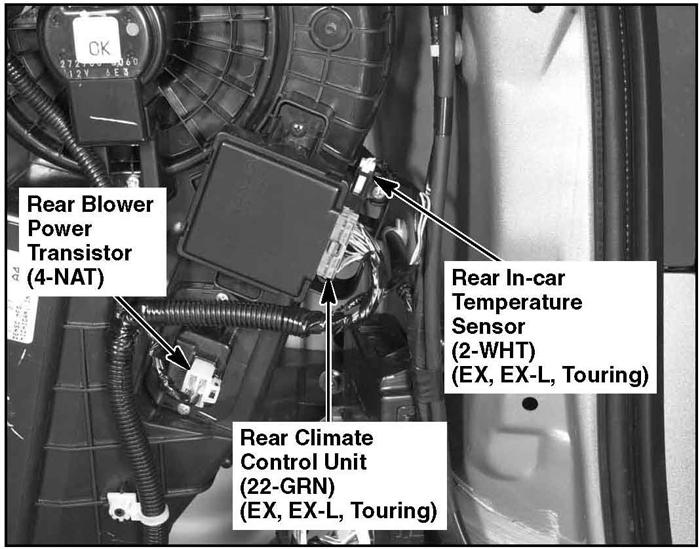 | Rear Climate Control Unit | Behind right rear side trim panel. See Figure. |