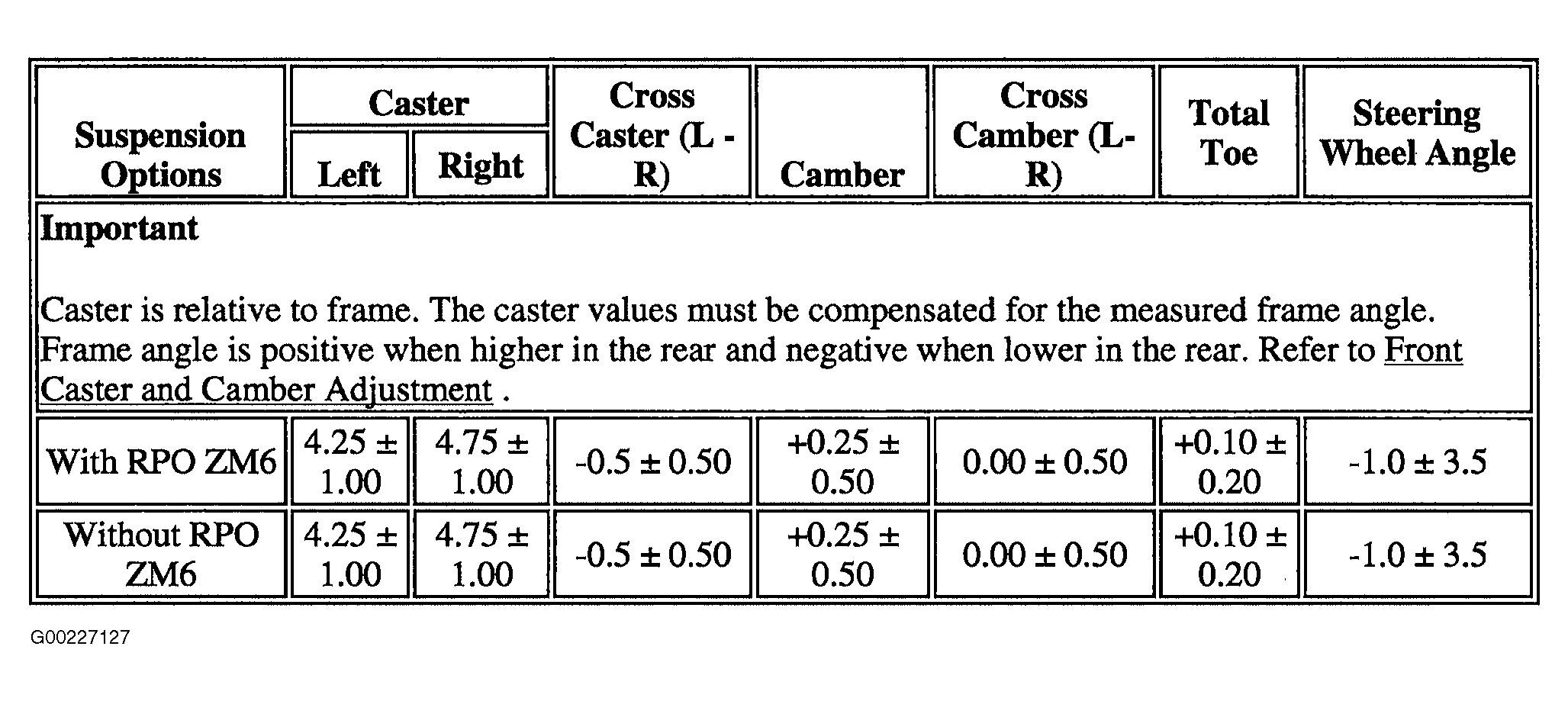 Wheel Alignment Specifications