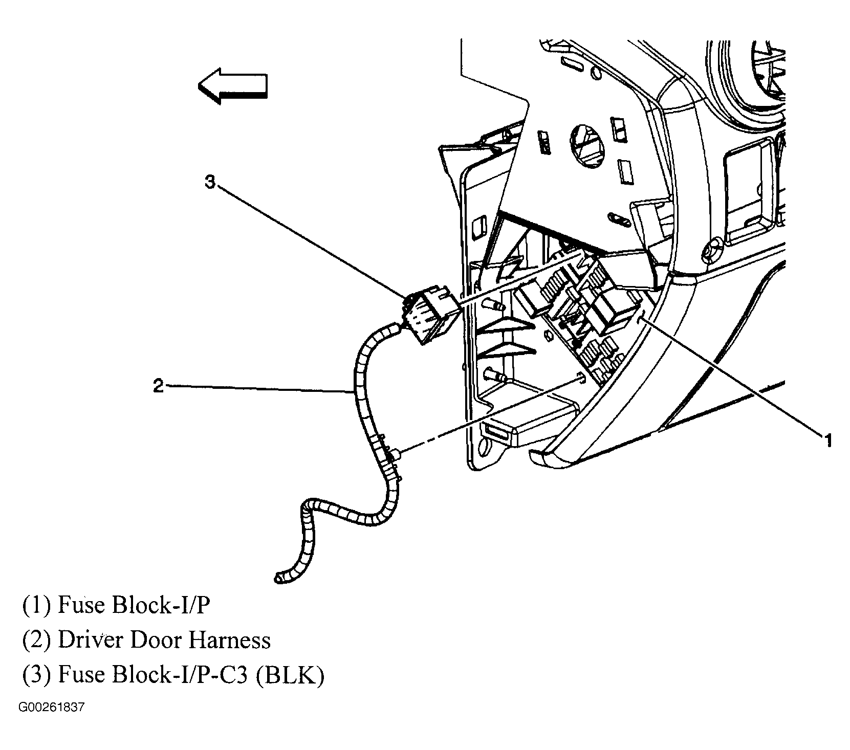 | I/P Fuse Block I/P | On lower left side of dash. See Figure . |