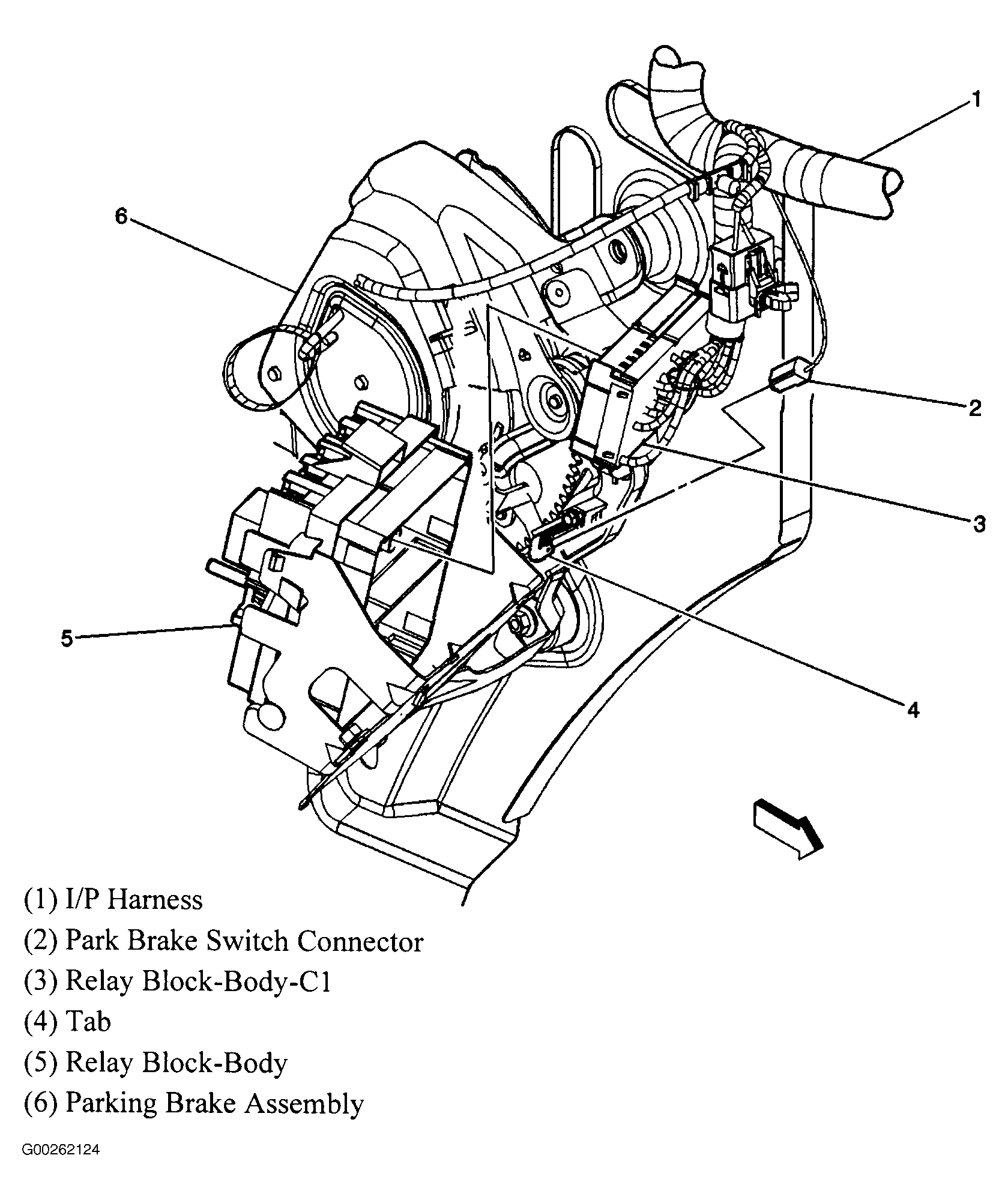 | Body Relay Block | Near parking brake assembly. See Figure . |