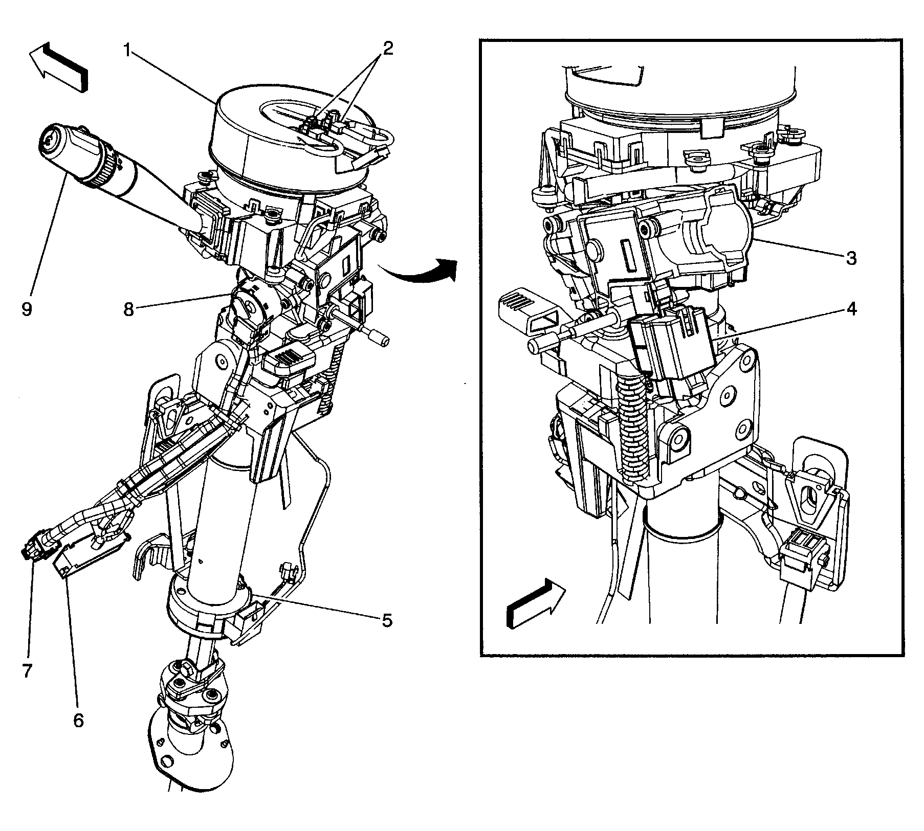 Ignition Switch (8) Bottom center of steering column. See Figure.