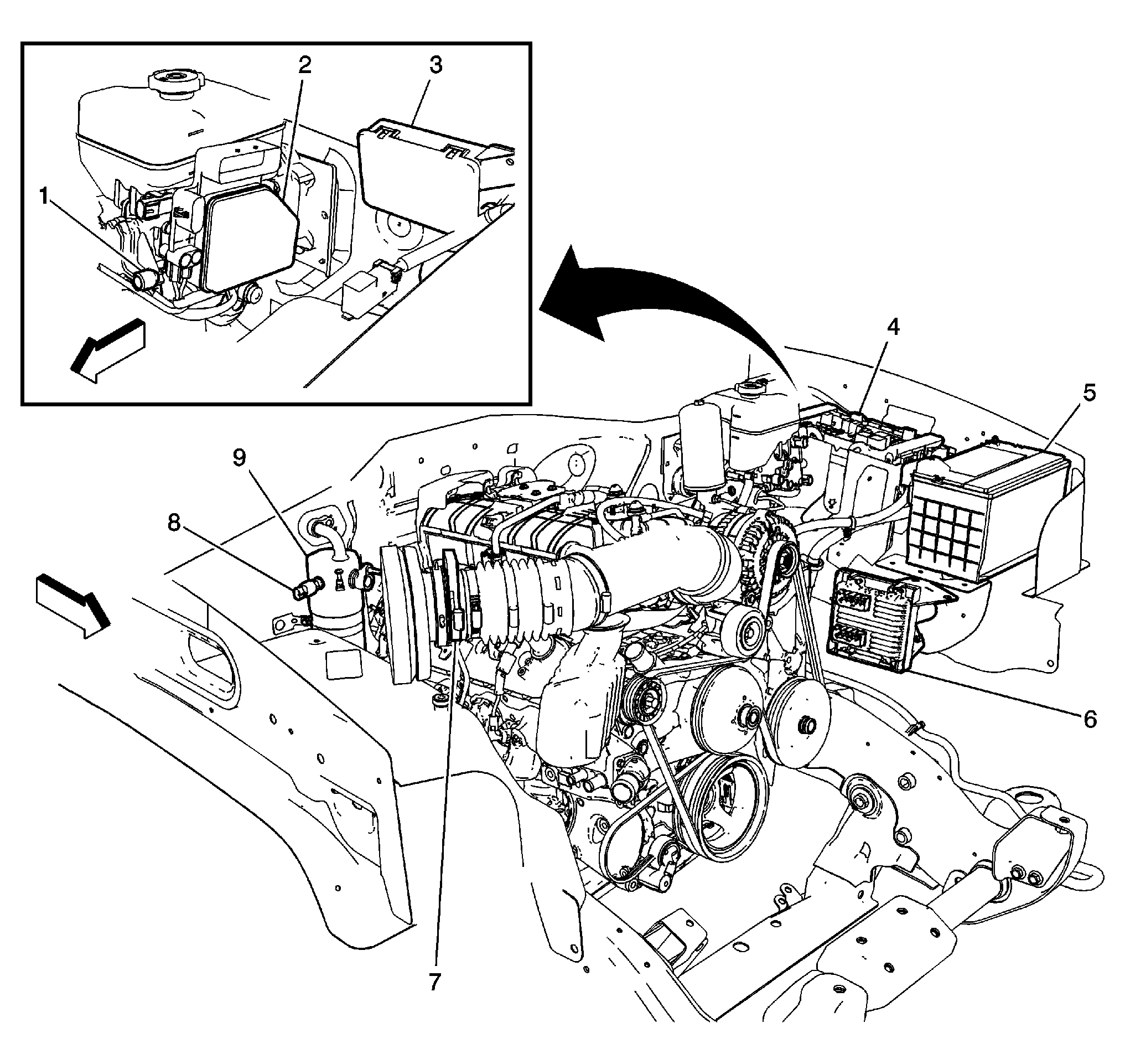 | Engine Control Module (ECM) (5) | Left side of engine compartment. See Figure. |