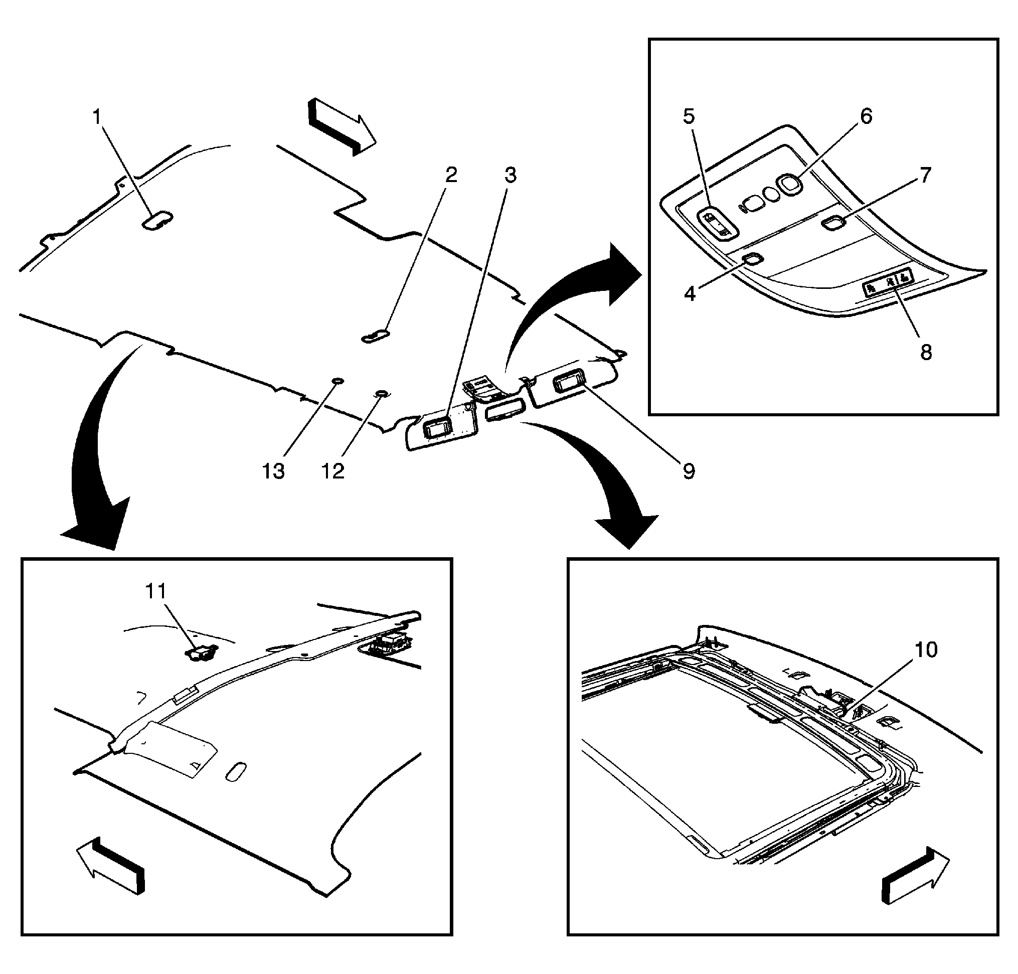 | Sunroof Module (10) | Front overhead console. See Figure. |