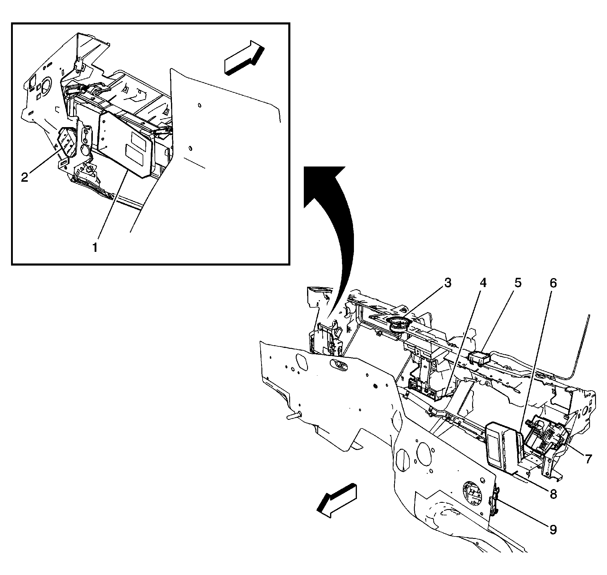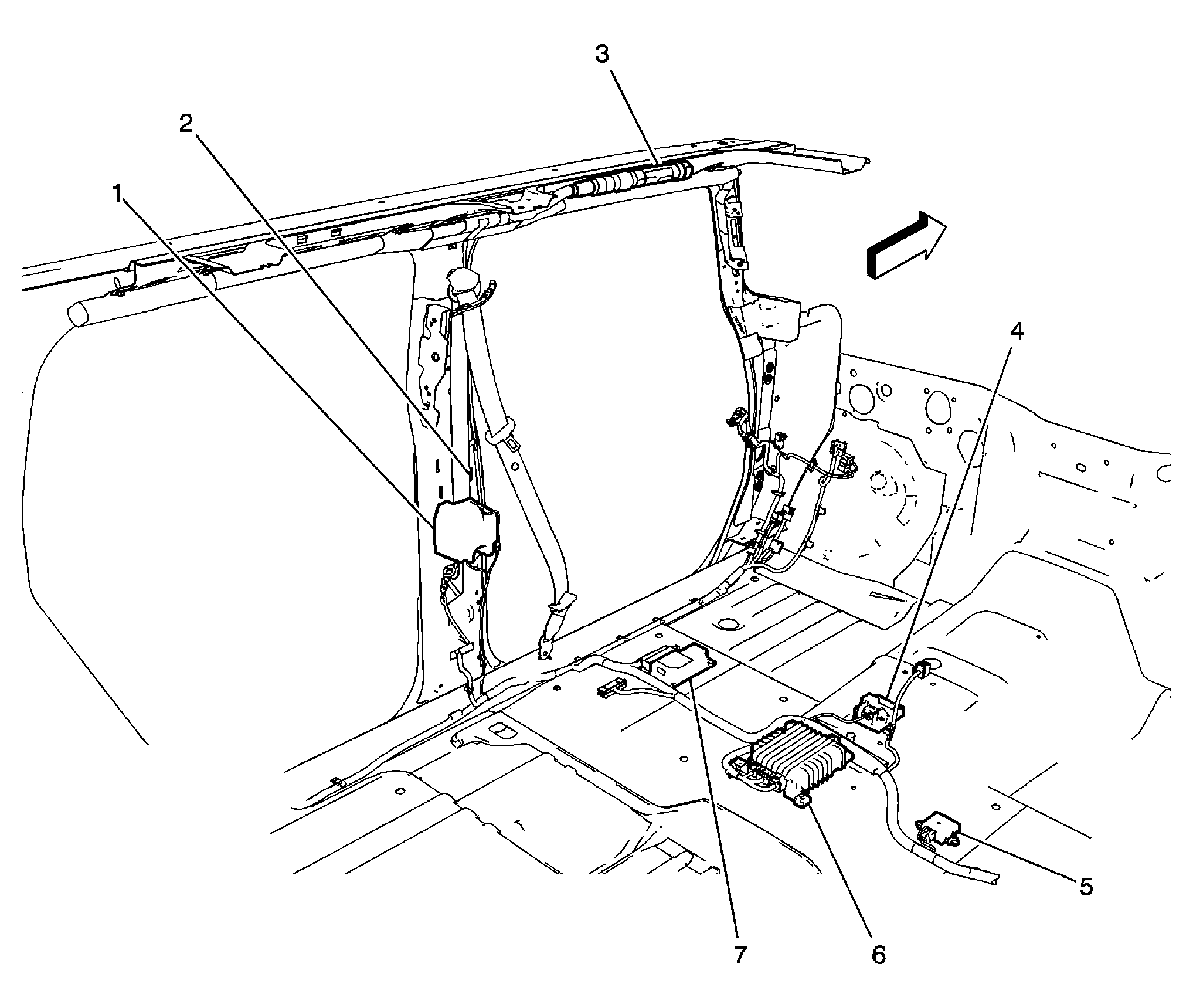 | Inflatable Restraint Sensing & Diagnostic Module (SDM) (7) | Left front seat. See Figure. |