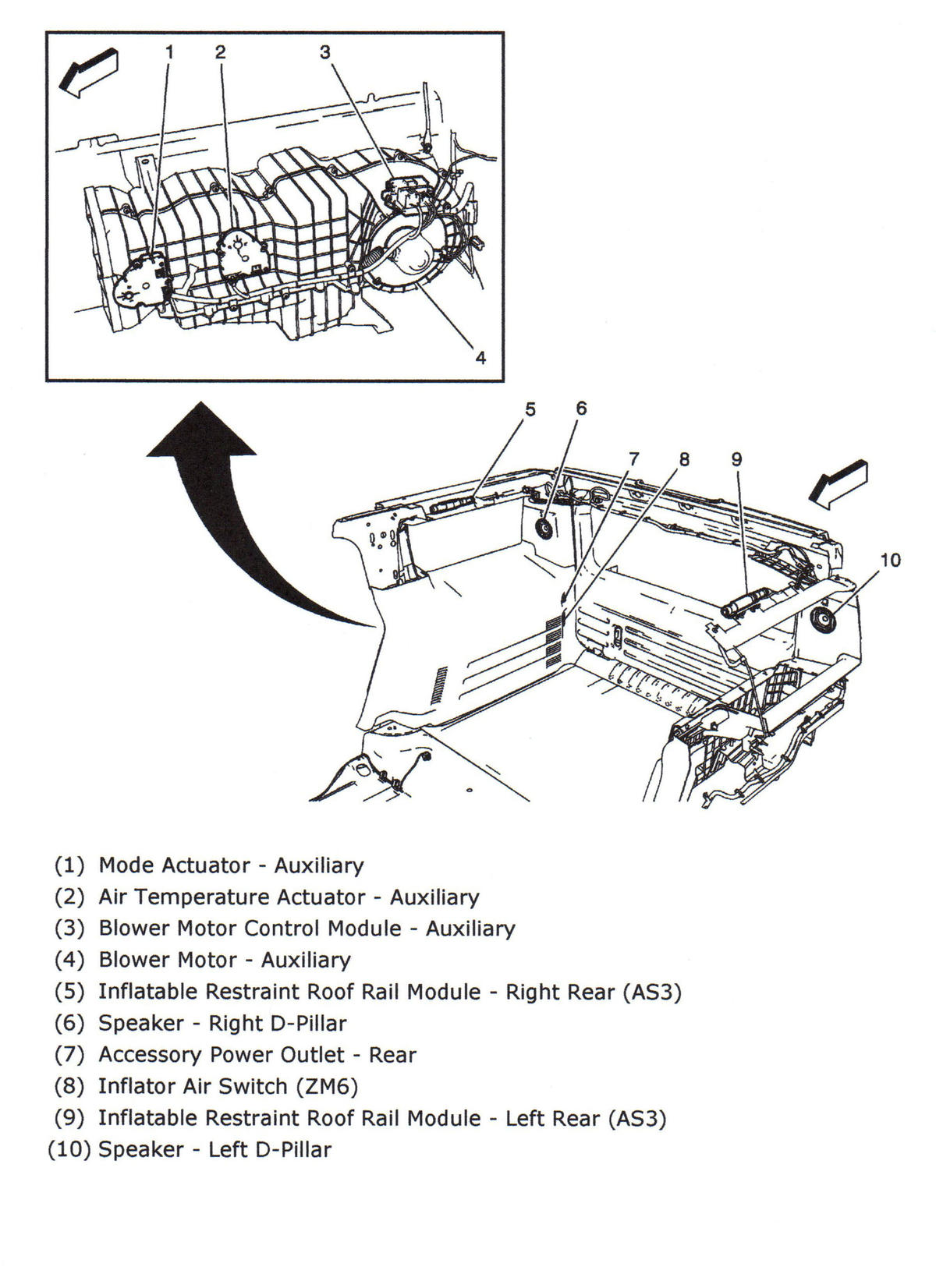| Blower Motor Control Module-Auxiliary (3) | Rear of auxiliary HVAC module. See Figure. |