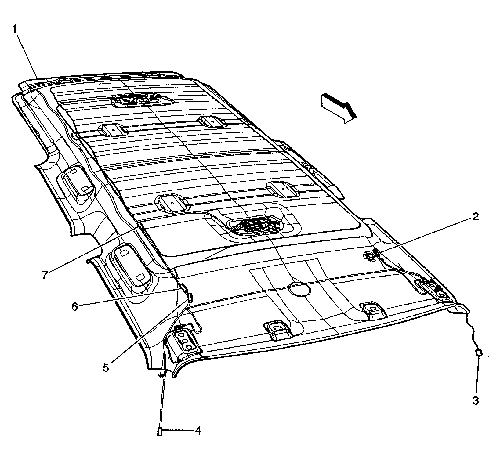 | J340 (6) | In dome lamp jumper harness, approximately 10 cm before breakout to right sunshade. See Figure. |