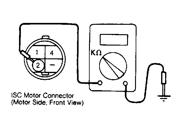 - Disconnect ISC motor connector. Check motor coil continuity between terminals No. 1 and 4. See Figure . Resistance should be 5-35 ohms. If resistance is zero ohms or abnormally large, an open or short exists in motor coil. Replace ISC servo assembly.