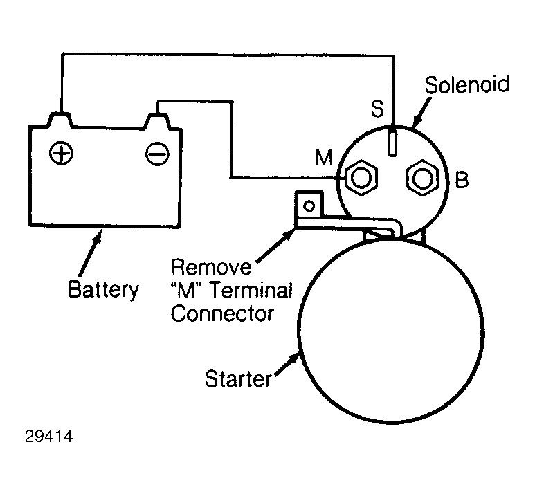 Connect jumper wire between positive post of 12-volt battery and "S" terminal. Connect a second jumper wire to negative battery terminal and touch "M" terminal. See Fig 1. If pinion moves outward, pull-in coil is good. If pinion does not move outward, replace solenoid.