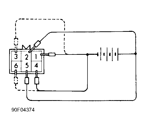 - To check stepper motor operation, remove 6-terminal ISC stepper motor connector. Apply approximately 6 volts (from a separate power supply) to ISC motor terminals No. 2 and No. 5. Connect negative lead of 6-volt power supply to terminals No. 1 and No. 4, then No. 3 and No. 4, then No. 3 and No. 6, and, finally, No. 1 and No. 6. If stepper motor moves as voltage is applied to each of the 2 terminals, the stepper motor is operating correctly.
