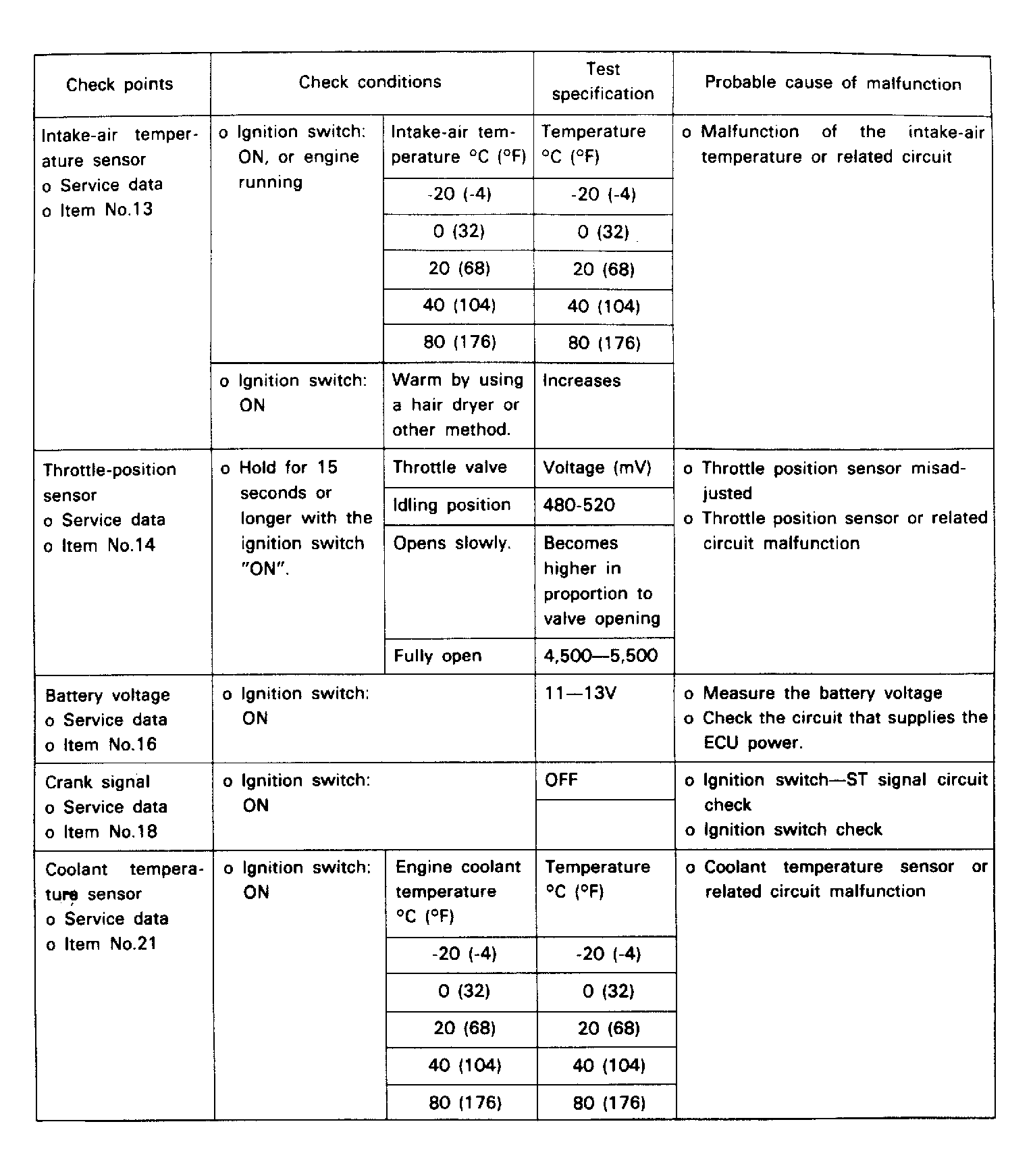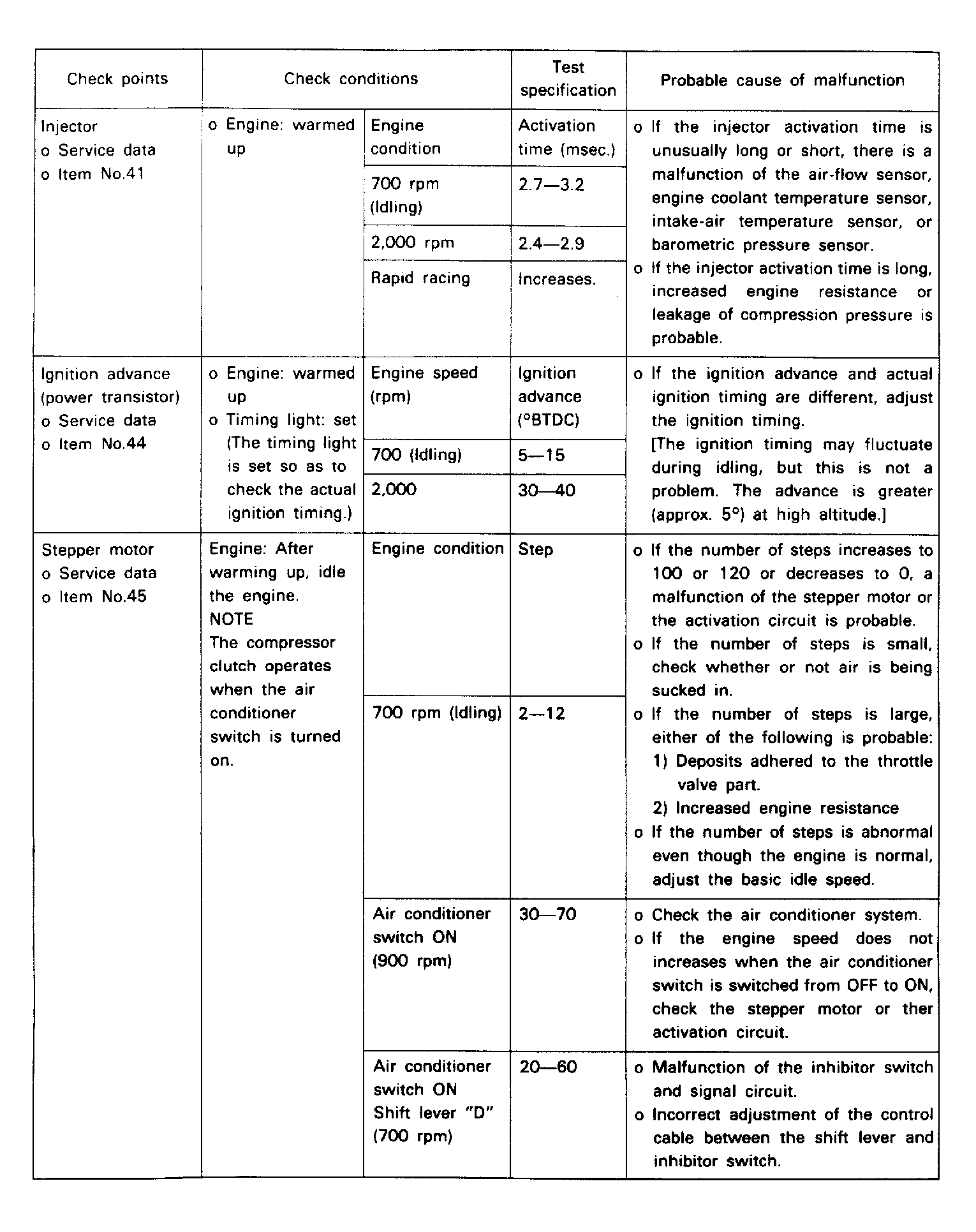 Fuel Pres., Injectors, Vacuum Leak, O2 Sensor |