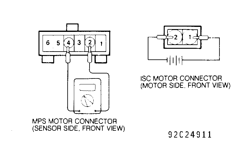 Apply only 6 volts DC or less to ISC motor connector. Higher voltage could cause ISC motor gears to lock up.