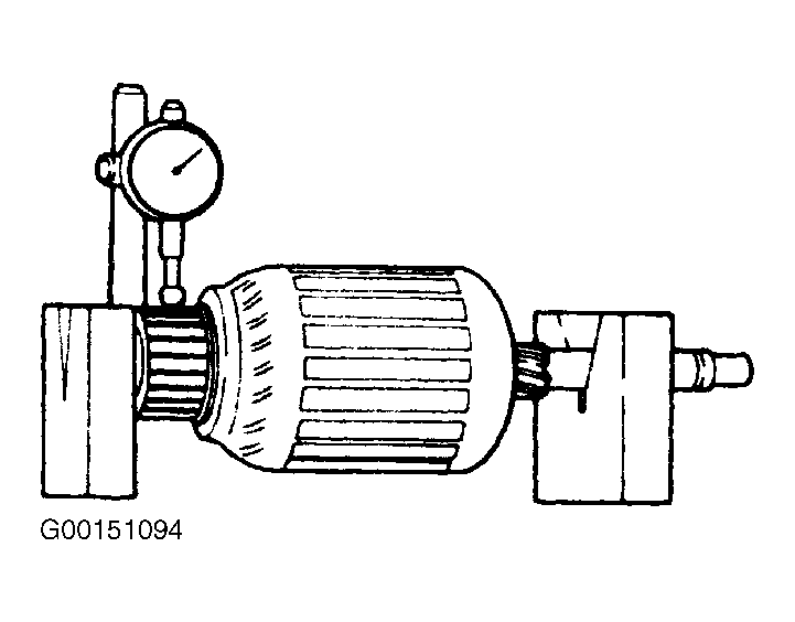 - Place armature on a pair of V-blocks, and check deflection by using a dial gauge. Standard Value: 0.002 In. (0.05 mm). Limit: 0.0039 In. (0.1 mm). See Fig 1 .