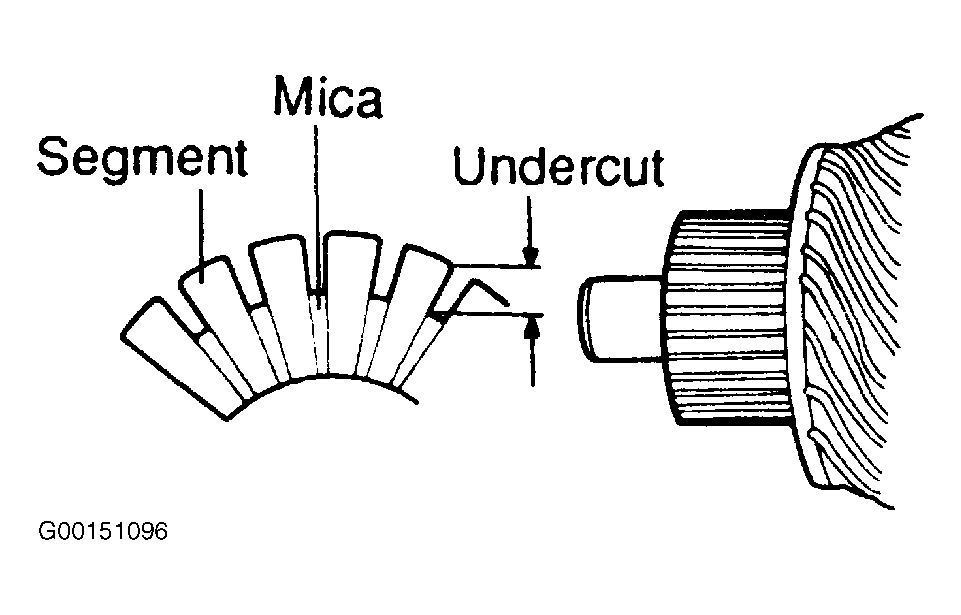 - Check depth of undercut between segments. Standard Value: 0.020 In. (0.5 mm). Limit: 0.0079 In. (0.2 mm). See Fig 3 .