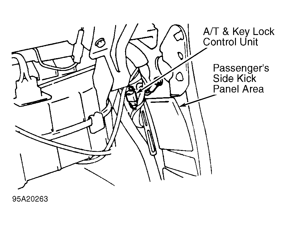| A/T & Key Lock Control Unit | Behind right kick panel. See Figure . |