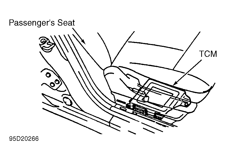 | Transmission Control Module (TCM) | Under front passenger's seat. See Figure . |