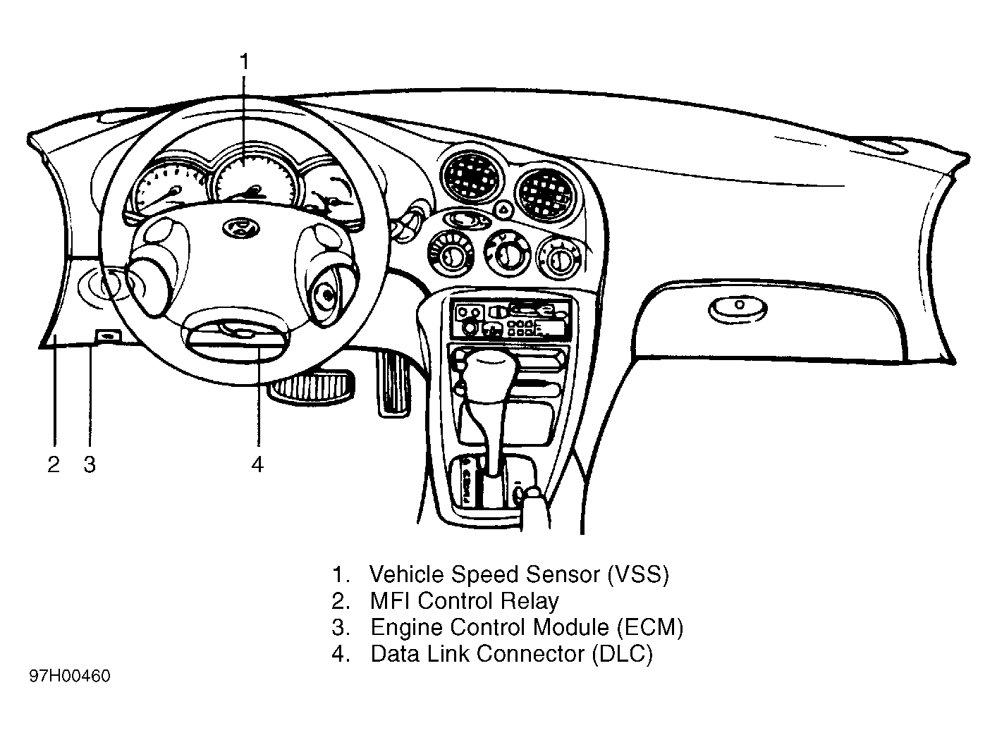 | Engine Control Module (ECM) | Behind left side of dash. See Figure . |