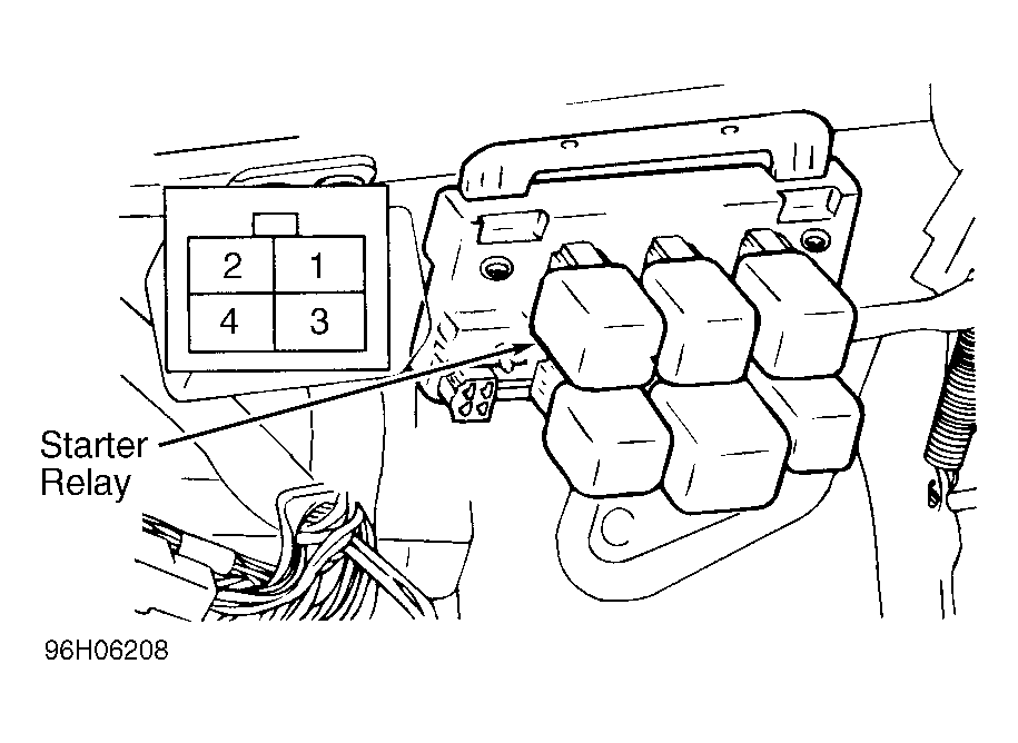 - Apply battery voltage between terminals No. 1 and 3. Continuity should now exist between terminals No. 2 and 4. If continuity is not as specified, replace starter relay. If continuity is as specified, starter relay is okay at this time.