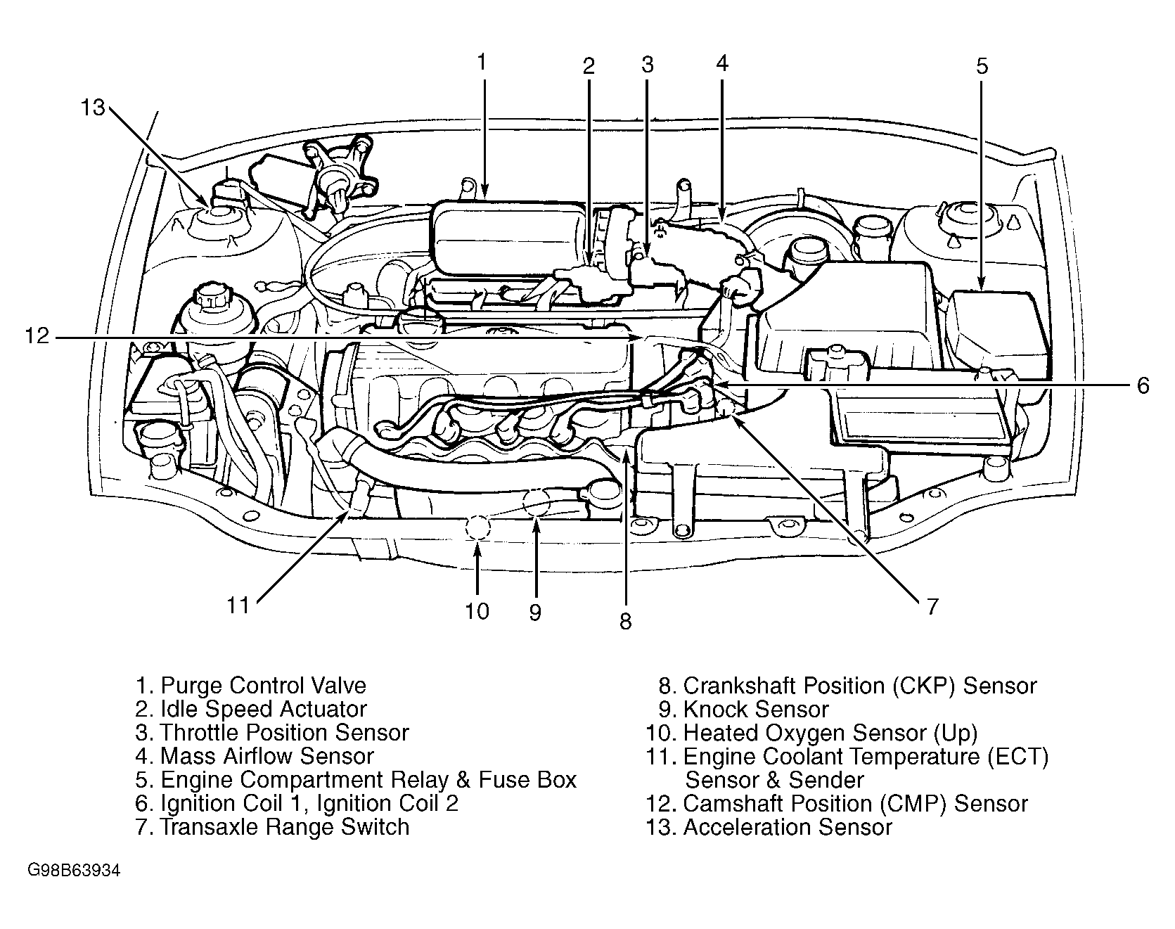 | Engine Compartment Relay & Fuse Box | On left side of engine compartment, in front of strut tower. See Figure . |